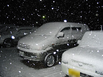 で駐車場まで行ってビックリ。車はすっかり雪に覆われている。ここは本当に岡崎か?あと1時間もすれば身動きが取れなくなるところであった。時々タイヤが滑るが何とか坂道も上っていくのでゆっくり走らせて無事自宅までたどり着いた。帰り道はほとんど下り坂なので助かった。普通タイヤでは上りは無理だったかもしれん。