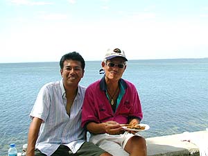 佐久島に上陸。バーベキューの準備をするジャンボ、大橋、朋ちゃん
