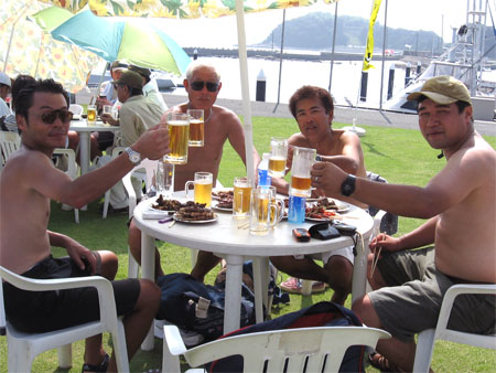 優勝は出来ませんでしたが、この人数で準優勝は頑張った方でしょう。レース中に汗をいっぱいかいたので、パーティで出る生ビールは最高でした。みんな何杯もお代わりしていましたね〜。来年こそは優勝を目指して頑張りたいと思います。(レースの写真を日産マリーナ東海の渡邊さんに頂きました。ありがとうございます。)