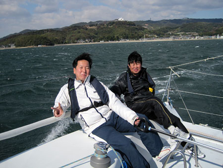 整備が済んでから、ラグナマリーナへ回航に出発。かなり風が強く30ノットまで吹き上がりました。