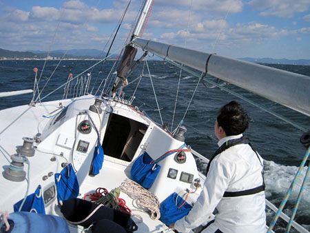 佐久島を回って、ラグナマリーナまでのダウンウィンドレグで、ジェネカーランで13ノットを超えました。それでもトラブルもなく、何とかこの日のレースも走り切りました。