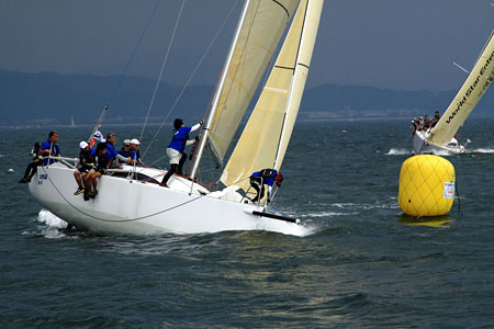 全体的にレーティングが低い艇と高い艇の距離の差が出ないレースコンディションのため、レーティングの高いJUST EIGHTは不利となりました。