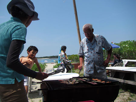 海水浴場横のバーベキュー場で海鮮BBQを楽しみました。子供達は海岸でヤドカリを捕まえたり泳いだりで大変楽しんでいたようです。(飲むのに夢中で見ておりませんが・・スミマセン_笑)