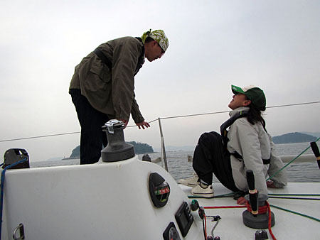 久し振りに艇を出して練習しました。 残念ながら風がヒョロヒョロで、午後から雨が強くなってきたのでマリーナに引き上げましたが、スナメリちゃんの群れの御歓迎?など、なかなか楽しいセイリングでした。昼食&ミーティングの後、来週のレースの準備をして解散しました。(全員で写真撮るの忘れました)